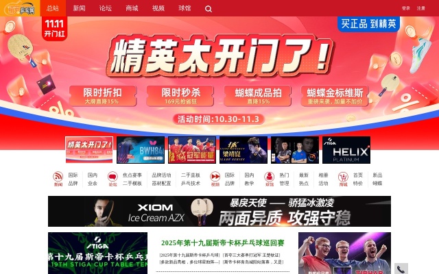 精英网是网络乒乓领军品牌,蝴蝶品牌授权网站,拥有乒乓球器材商城、乒乓球新闻、乒乓球论坛、乒乓球俱乐部、乒乓球视频等多个平台,是业界权威的乒乓媒体和乒乓器材直销平台。精英乒乓网与蝴蝶、红双喜、斯帝卡、双鱼、729、亚萨卡、银河、挺拔、骄猛、多尼克、世奥得等40多个乒乓球品牌建立了正式的合作关系。