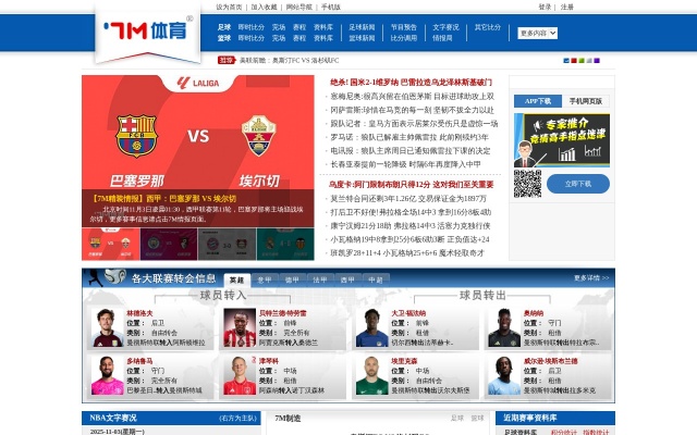 7M体育提供全球足球、篮球赛事、棒球赛事,实时比分直播,涵盖英超、欧冠、NBA、CBA等热门联赛最新赛程数据与积分榜。免费查询赛事预测,支持手机APP实时比分提醒。