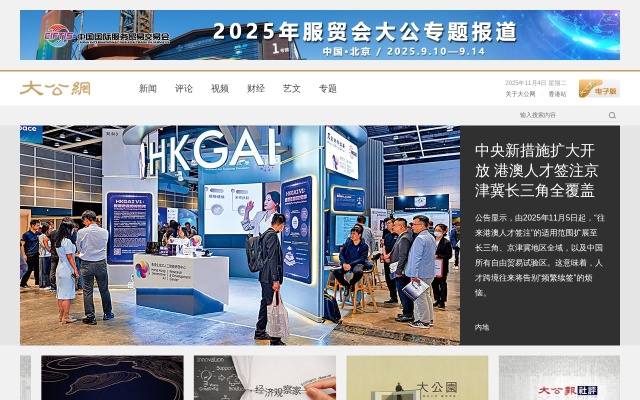 《大公报》1902年6月17日创刊于天津,是现存历史最悠久的中文报纸。报名释义「忘己之为大、无私之谓公」。大公报为中国新闻文化事业培养了很多人才,对推动中国历史进步发挥了重要作用,中国新闻史学界有「一部新闻史,半部在大公」之说。大公网是《大公报》官方网站、香港大公文汇传媒集团旗下的新媒体平台。