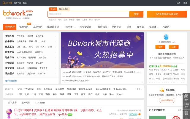 BD沃客网是对接异业合作、市场商务合作、人脉拓展、资源置换等BD合作的商务合作平台,帮助企业完成找合作找客户找推广等,是市场、商务、互联网BD必备的网站,资源整合上BDwork,必得我客。