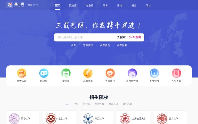 高三网(蝶变高考APP)拥有国内教育行业优质的内容积累和生产力,网站提供了包含全国各个省份的高考资讯信息、专业库、大学库、学科试题、真题答案等等,几乎涵盖了学生从入学到升学全部的内容需求。