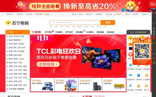 苏宁易购(Suning.com)-线上线下深度融合的零售平台,商品涵盖家电、手机、电脑、超市、母婴、百货、海外购等品类。换新到苏宁 省钱更省心!五重补贴 买贵就赔 多重保障 一站换新。 正品行货、全国联保、可门店自提,全网更低价,家电家装成套购,专注服务省心购!