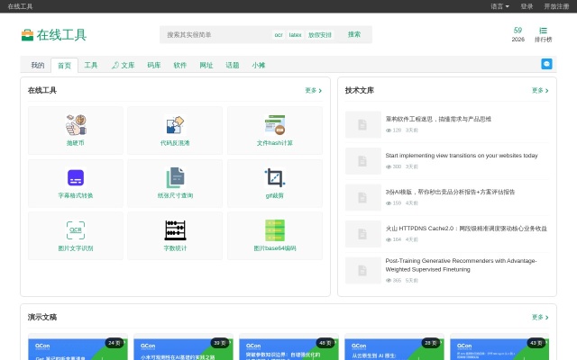 集合大量实用工具:在线工具,开发人员工具,代码格式化、压缩、加密、解密,下载链接转换,json格式化,正则测试工具,favicon在线制作,字帖工具,中文简繁体转换,迅雷下载链接转换,进制转换,二维码,照片压缩,pdf合并。