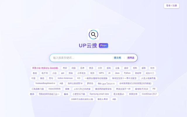 UP云搜,聚合网盘搜索神器,提供 阿里云盘、夸克网盘、百度网盘、蓝奏网盘、迅雷网盘、天翼网盘、彩和网盘 等网盘资源搜索。更新快、资源全、速度快、免费。