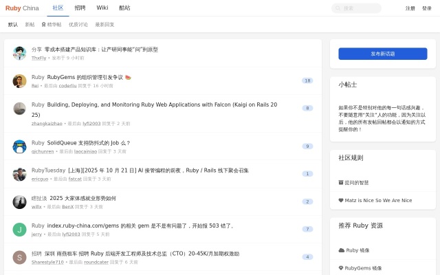 网站提供Ruby语言分享交流空间,还有ruby相关工作招聘,ruby技术文档,ruby酷站等内容。