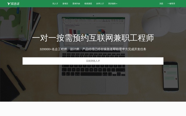 猿急送为您提供兼职程序员、程序员接私活、企业开发外包信息,猿急送是一个高级技术共享平台,是优质的程序员兼职网站,这里汇聚BAT等知名互联网公司的技术开发、产品、UI设计大牛,通过程序员兼职,程序员接私活等方式,一对一为创业公司解决程序员、工程师等开发、产品设计人力问题。