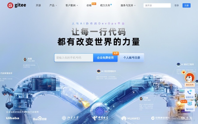 Gitee(码云)(gitee.com)由北京奥思研工智能科技有限公司运营,是目前国内最大的代码托管·协作开发平台,开发者超过 1350 万,托管项目超过 3600 万,汇聚几乎所有本土原创开源项目,并于 2016 年推出企业版,提供企业级代码托管服务,成为开发领域领先的 SaaS 服务提供商。