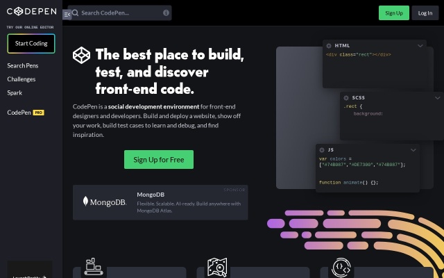 此外,当你在编辑器中修改代码时,CodePen的屏幕上有一个实时预览区域,可以立即显示代码修改后的效果。