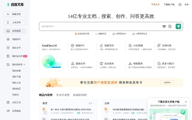 百度文库是中国最大的一站式智能写作、文档资源集合平台,包括文档查找、AI内容生成、编辑,资料管理等一应俱全的办公学习平台。