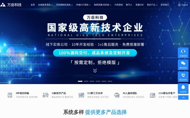 万岳科技专注于在线教育系统源码、电商直播系统源码、商城系统源码开发,以及在线教育平台、电商平台开发搭建,帮您快速部署专属教育APP和电商平台。万岳科技是一家专业的教育软件开发商和直播商城系统服务商。