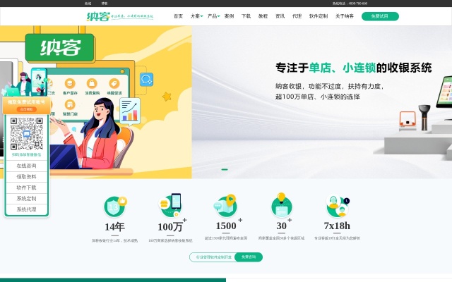 纳客收银系统:涵盖商超、零售、专卖、场馆、油站等场景下的收银管理,提供收银机+智能POS机+收银系统+扫码枪+打印机的一站式完整解决方案;