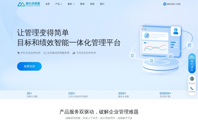 融云北极星依托先进的人工智能与云计算技术,精心研发出多款明星SaaS产 品:北极星OGSM,北极星OKR,北极星项目,北极星任务以及北极星绩效等。为企业打造培训咨询服务和数字化工具于一体的全方位解决方案,助力企业顺利踏上数字化、智能化的经营管理之路,推动企业实现高质量发展,更好地适应时代发展的新需求。
