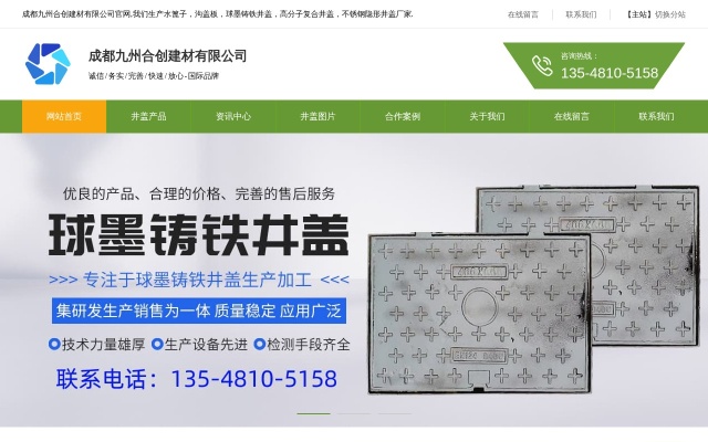 成都九州合创建材有限公司是一家专业生产井盖的生产性企业。公司有生产球墨铸铁井盖,铸铁井盖,复合井盖,树脂井盖,不锈钢隐形井盖,水泥井盖,沟盖板,雨水篦子。拥有先进齐全的井盖生产设备,机制流水线井盖生产设备,半自动井盖生产设备,形成对井盖行业的带领作用,是井盖种类更新最快规格尺寸最齐全的井盖厂家之一。