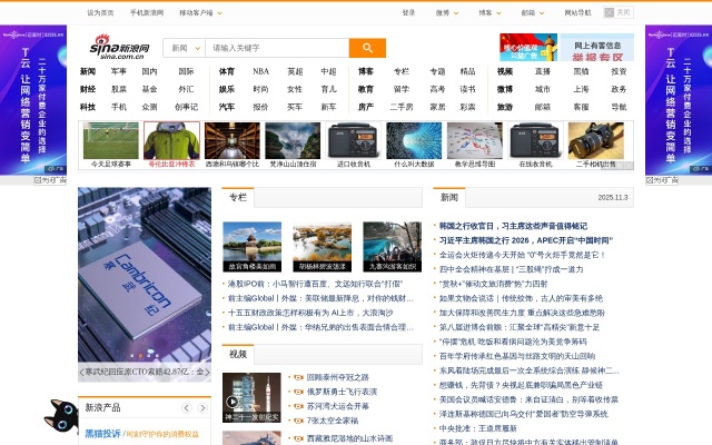 新浪网为全球用户24小时提供全面及时的中文资讯,内容覆盖国内外突发新闻事件、体坛赛事、娱乐时尚、产业资讯、实用信息等,设有新闻、体育、娱乐、财经、科技、房产、汽车等30多个内容频道,同时开设博客、视频、论坛等自由互动交流空间。