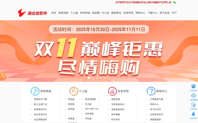 通达信软件是网上交易领域市场份额上升较快的软件品牌之一。通达信进入网上交易领域以来,成功完成了多家券商总部级的网上交易系统承建和维护工作。从南方证券超强版开始,通达信一直是网上交易系统业务创新和技术性能指标领先的软件供应商。