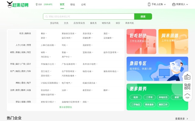 赶集招聘,又叫赶集直招,是更专业的招聘求职网站!海量职位、百强名企!互联网、银行、物流快递、电商、名企连锁等多种行业全覆盖,专业求职、找工作、高薪跳槽就上赶集招聘 ganji.com!