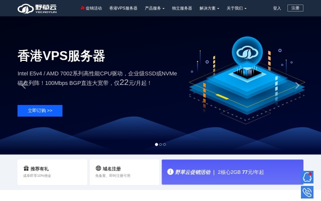 野草云提供多品类的免备案服务器及域名注册/转移服务,购买配置即可用,项目立即上线,无需等待!
