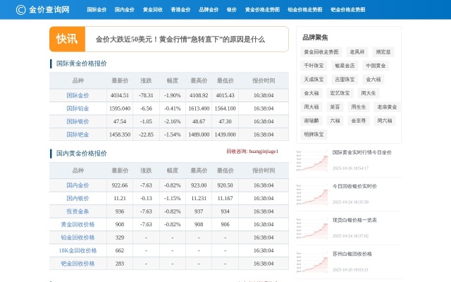 金价查询网是一个专业的黄金价格今日金价查询平台,提供国际金价、国内金价、今日金价、金店黄金报价、黄金回收、上海黄金、银行黄金价格、沪金期货、香港黄金价格、黄金基金金价、黄金大盘价格等实时金价报价行情。