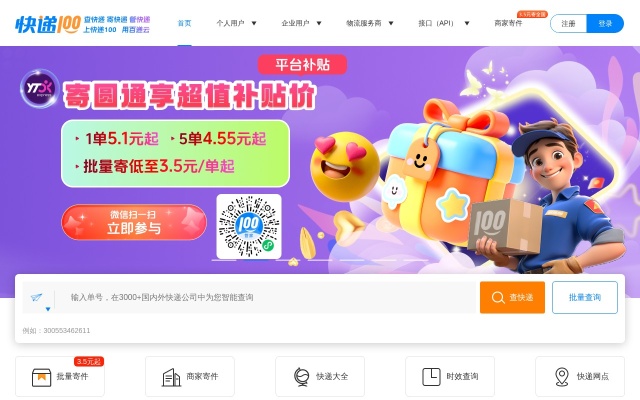 一站式查快递、寄快递信息服务平台。支持全球3000+快递公司单号查询、价格查询、时效查询;支持商家寄件、寄快递,国际快递、同城快递、大件物流;提供企业级快递查询API接口、电子面单API接口、寄件API接口。