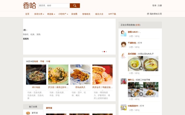 香哈网是一个专业的美食网站。提供丰富的菜谱、食谱、菜谱大全,更有菜谱图文视频讲解;学做菜、秀美食,与兴趣相投的好友在美食圈相遇。互联网最大的美食社区!