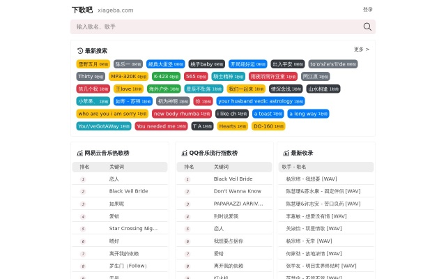 下歌吧 - 在线音乐搜索,可以在线免费下载全网MP3付费歌曲、流行音乐、经典老歌等。曲库完整,更新迅速,试听流畅,支持高品质|无损音质。