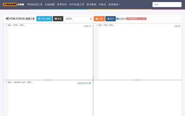 HTML/CSS/JS在线工具是一个在线的web前端开发IDE(集成开发环境),在同一页面有四个窗口,分别是HTML代码窗口、CSS代码窗口、JavaScript代码窗、运行结果窗口。在输入代码后,即可实时看到运行结果。