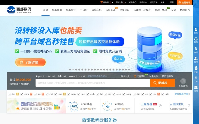 西部数码是创于2002年的老牌云计算服务商。专业提供云服务器、虚拟主机、域名注册、企业邮箱等,50余万个虚拟主机网站及1000余万个域名用户的共同选择!免费备案,7x24小时售后支持,助企业无忧上云。