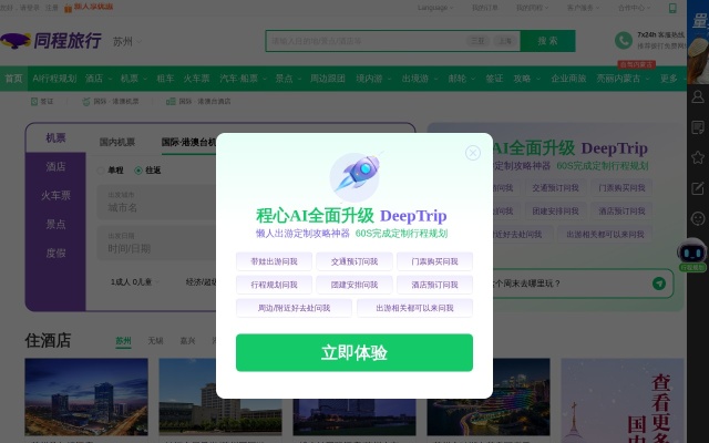 同程旅行(LY.COM)是一家专业的一站式旅游预订平台,提供近万家景点门票、特价机票、出国旅游、周边游、自驾游及酒店预订服务;专业旅游线路服务、让您的旅行更安心!
