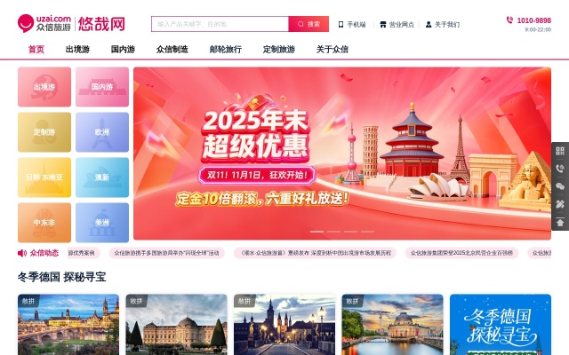 众信旅游悠哉网-中国专业旅游服务网站,提供全面的旅游线路、跟团游、自助游、公司旅游、出境游、周边游、国内游,产品质优,信息透明,先行赔付等五大承诺,让您放心出游。