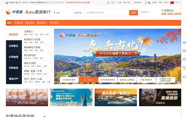 中青旅遨游网(aoyou.com)是上市公司中青旅(股票代码:600138)旗下的专业综合性旅游服务平台,提供出境旅游、国内游、海岛游、邮轮旅游、定制游、签证办理、海外移民、查询、全程优质服务,为您提供愉悦的旅程体验。
