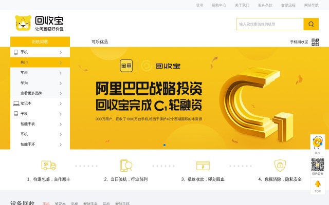 回收宝是由阿里巴巴战略投资的,以二手手机数码产品交易为核心的“互联网+循环经济”企业。