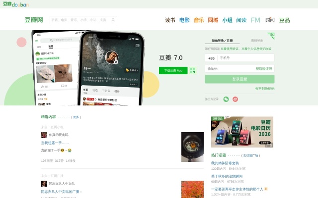 以读书、电影、音乐、小组为话题的兴趣交流社区