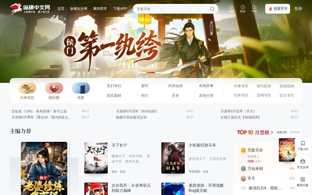 纵横中文网隶属于北京幻想纵横网络技术有限公司,是最新热门小说网站,提供玄幻奇幻小说、武侠仙侠小说、原创小说、网游小说、都市小说、言情小说、青春小说、科幻小说等首发小说,最新章节在线阅读。大神作品齐聚纵横,最新章节每日更新。