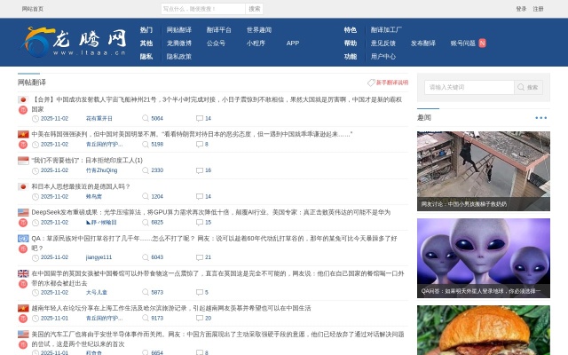 龙腾网是一个非常有趣和有意义的网站,专注于翻译各个国家的帖子和言论,这样可以从这些翻译内容中了解其他各国人民真实的思想和声音。尤其可以了解外国人对咱们中国的真实看法。对于做自媒体的人来说,也是一个很好的素材来源平台。