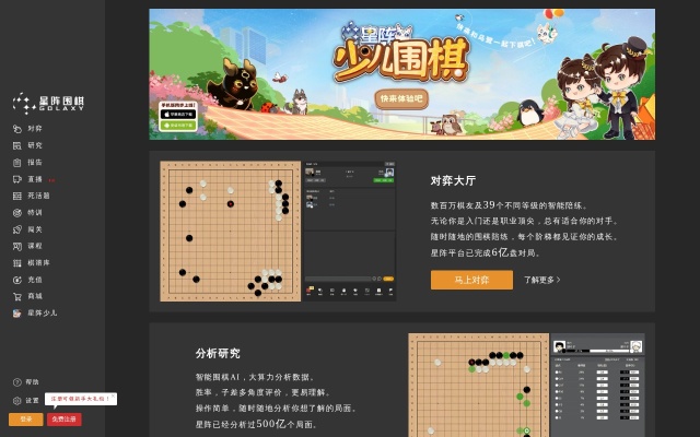目前星阵围棋已推出手机端软件、iPad软件,也可以使用电脑网页版。