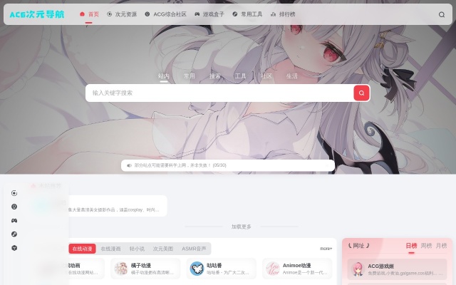 ACG次元导航是一个收录ACG动漫、漫画、游戏、轻小说、同人社区等二次元相关的综合性导航网站,帮助热爱ACG文化的绅士快速发现优质内容,探索专属二次元的世界!