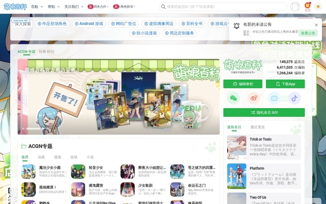 ACGN主题在线百科全书和二次元交流社区
