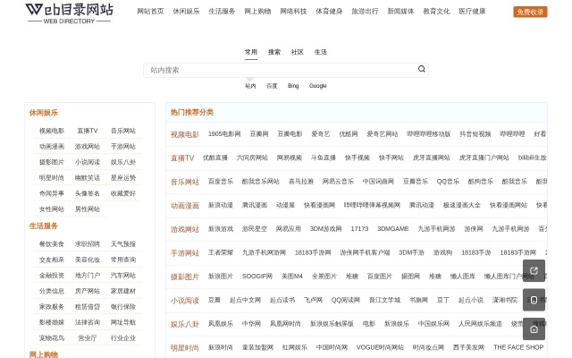 Web分类目录网站汇集各大优质网站,提供网址导航。及时收录影视、音乐、小说、游戏等分类的网址和内容,可在线搜索各种网站工具,给您日常生活提供便利。