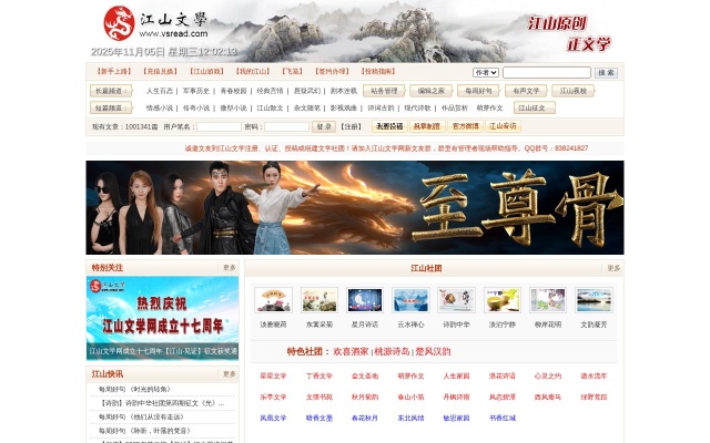 2、江山文学网着眼于社会责任感和历史文化观,将网站发展的重心定位在文化传播和正能量的弘扬上。