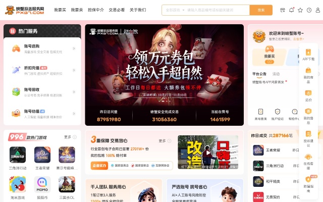 螃蟹游戏服务网是国内安全、权威、服务完善的大型网络游戏账号交易代售平台,提供游戏账号交易、手游交易、道具交易、账号买卖、鉴号估价、担保中介、账号回收、账号追回等服务,同时为用户提供专业的售后保障,找回包赔无时间限制,所有交易均签署专业电子版法律合同,让游戏账号交易有字有据,享受法律效力,保证用户权益。