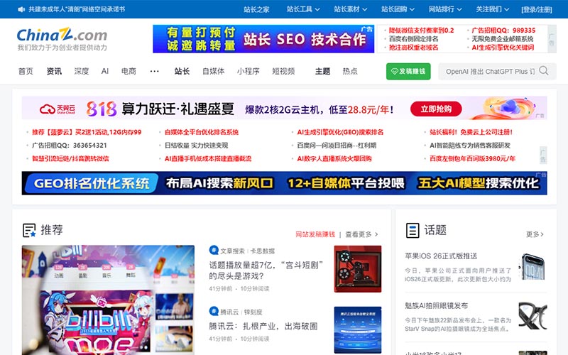 站长之家(中国站长站)为个人站长与企业网络提供全面的站长资讯、源代码程序下载、海量建站素材、强大的搜索优化辅助工具、网络产品设计与运营理念以及一站式网络解决方案,十年来我们一直致力为中文网站提供动力。