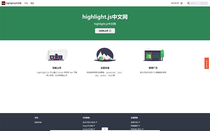 hightlight.js 可以通过 script 标签或 npm 下载导入使用,分分钟就能上手
